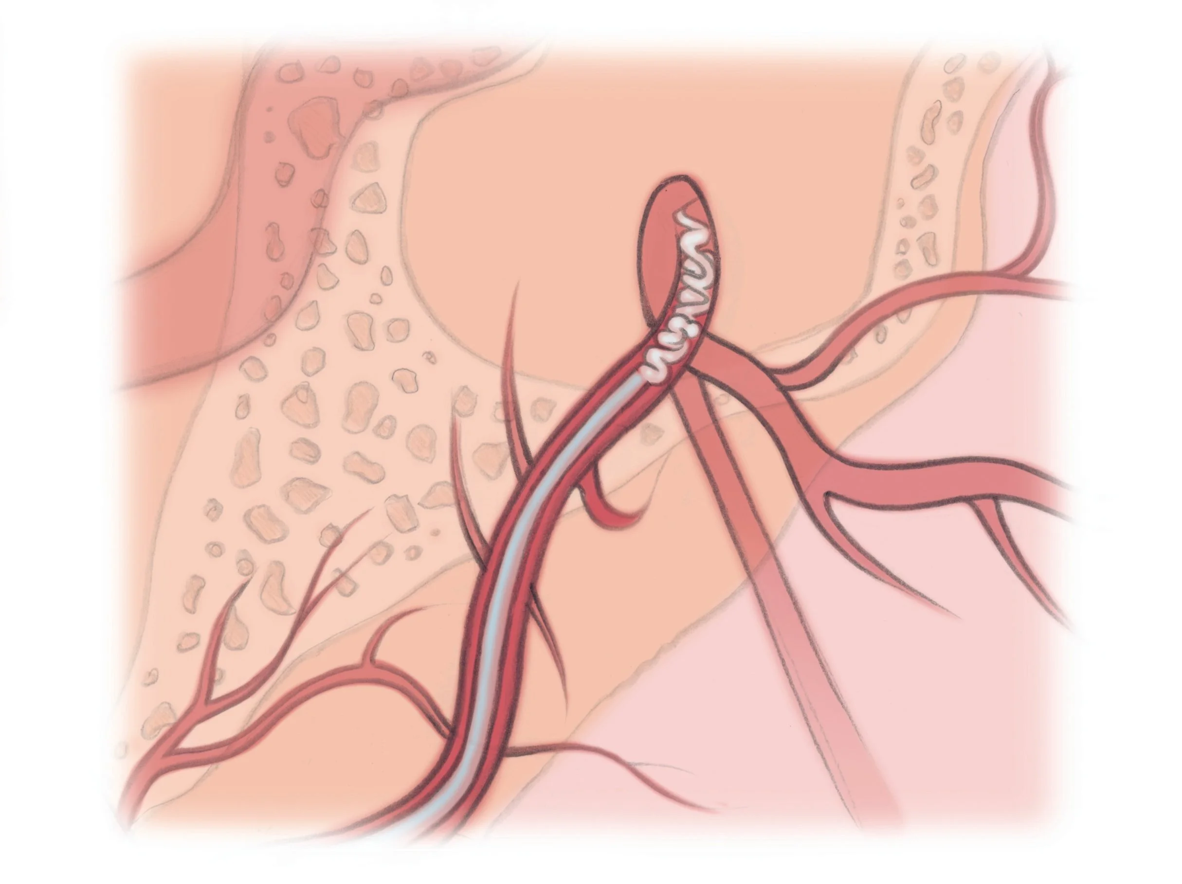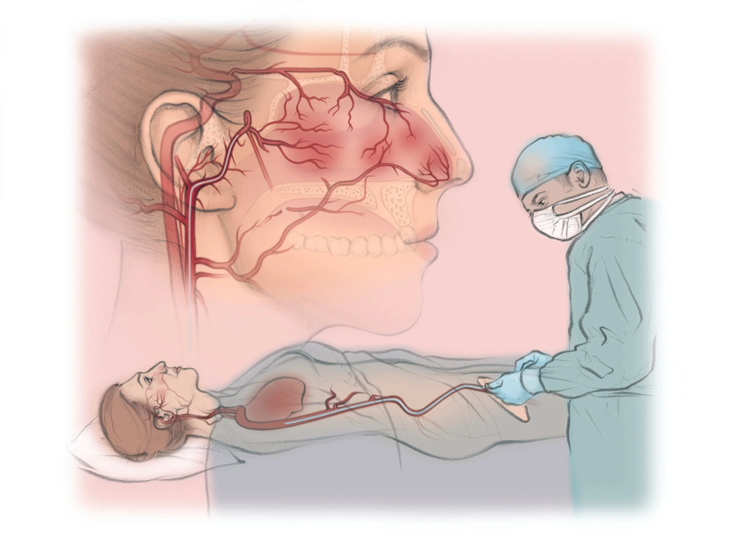 Embolization is a minimally invasive way to stop a severe nosebleed. The bleeding vessel is blocked with special material to stop the bleeding.
